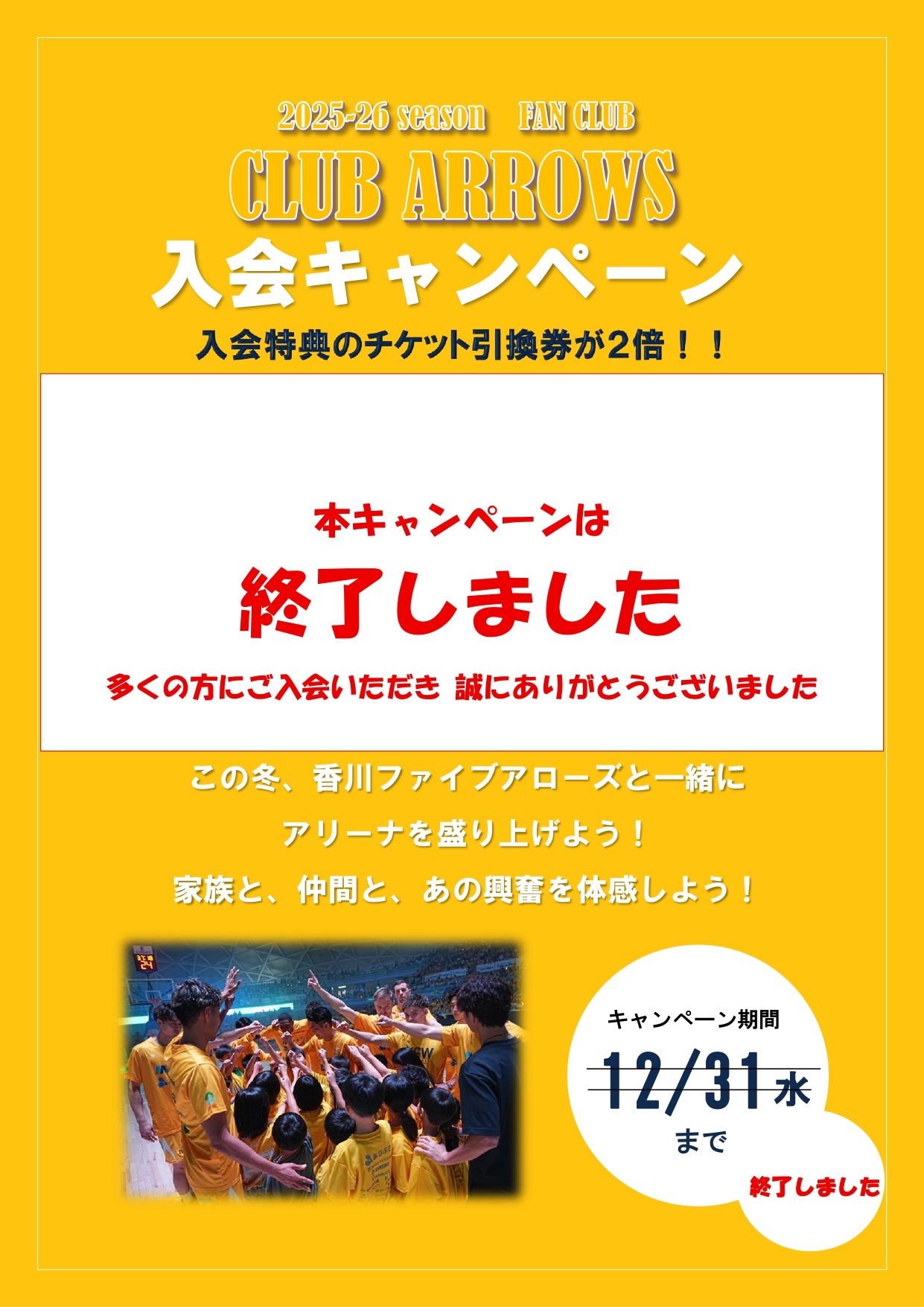 いつも香川ファイブアローズを応援していただき、誠にありがとうございます。