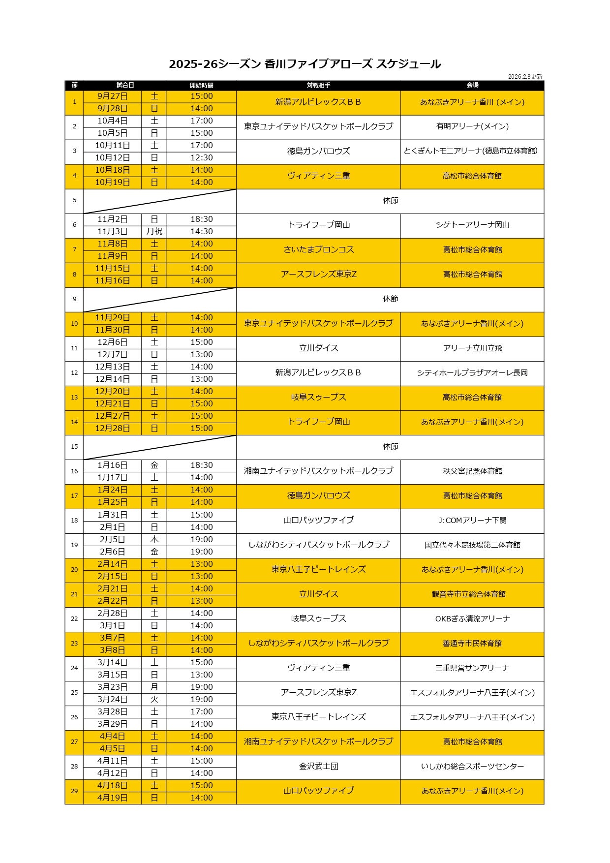 2025-26シーズン 試合開始時間決定のお知らせ