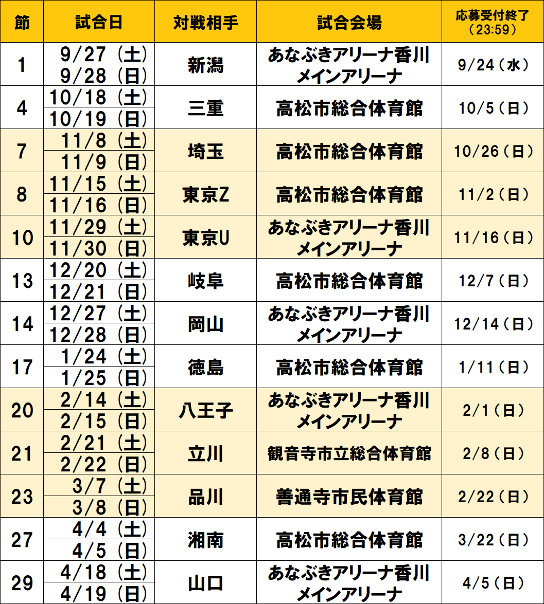 ※9月27日、28日の2試合のみ9月24日23:59までお申し込みを受け付けます。
