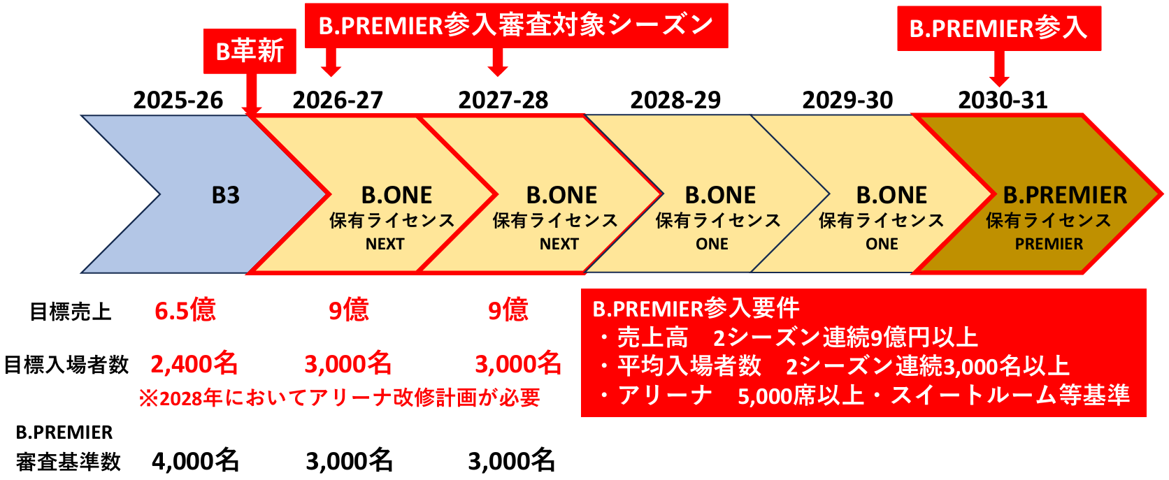 B.PREMIERライセンス取得条件充足による2030-31シーズンB.PREMIER参入