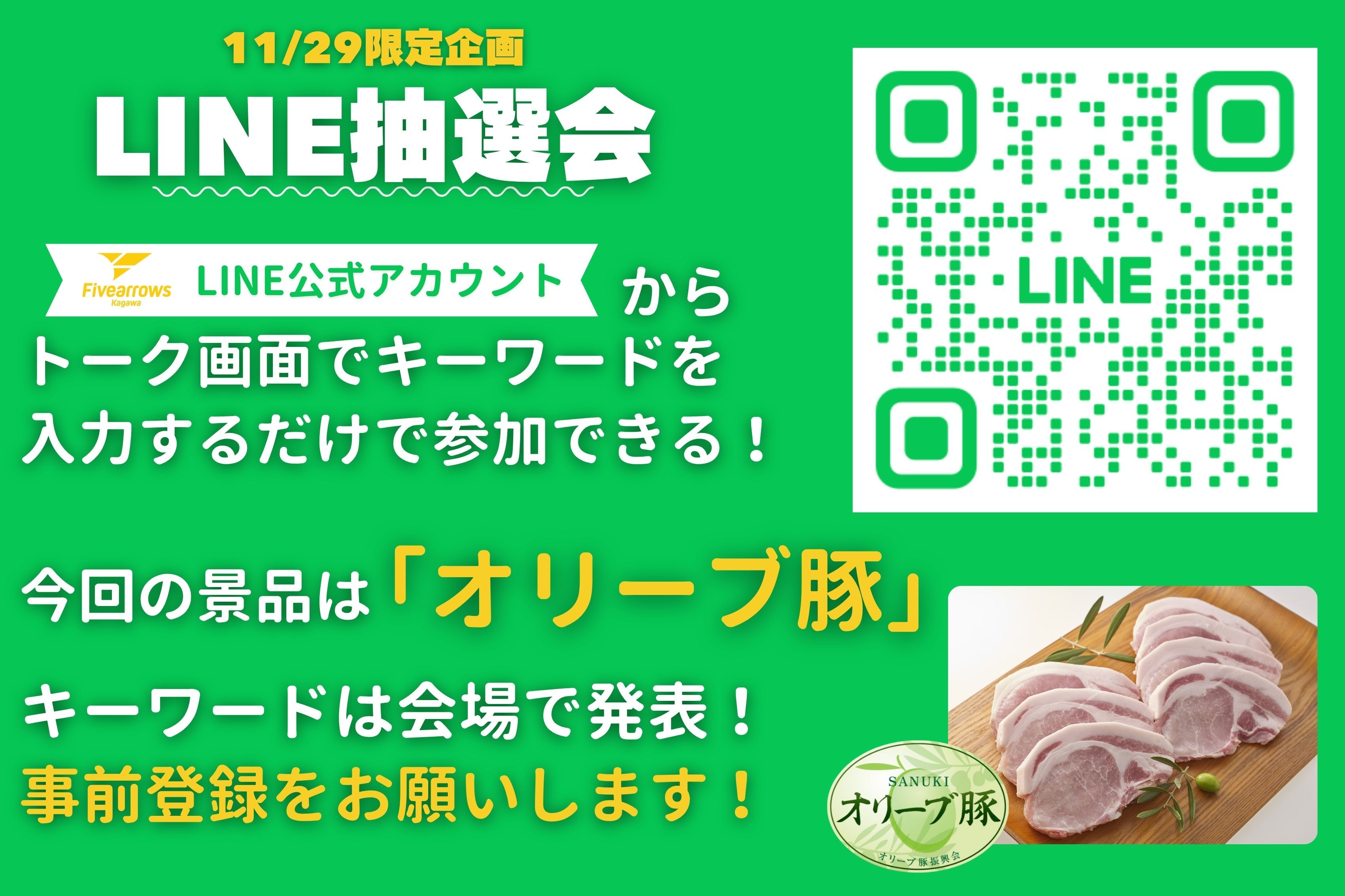 オリーブ豚 が当たる!LINE抽選会※29日のみクラブ公式LINEを友達登録!会場でしか分からないキーワードをトーク画面に入れるだけ!