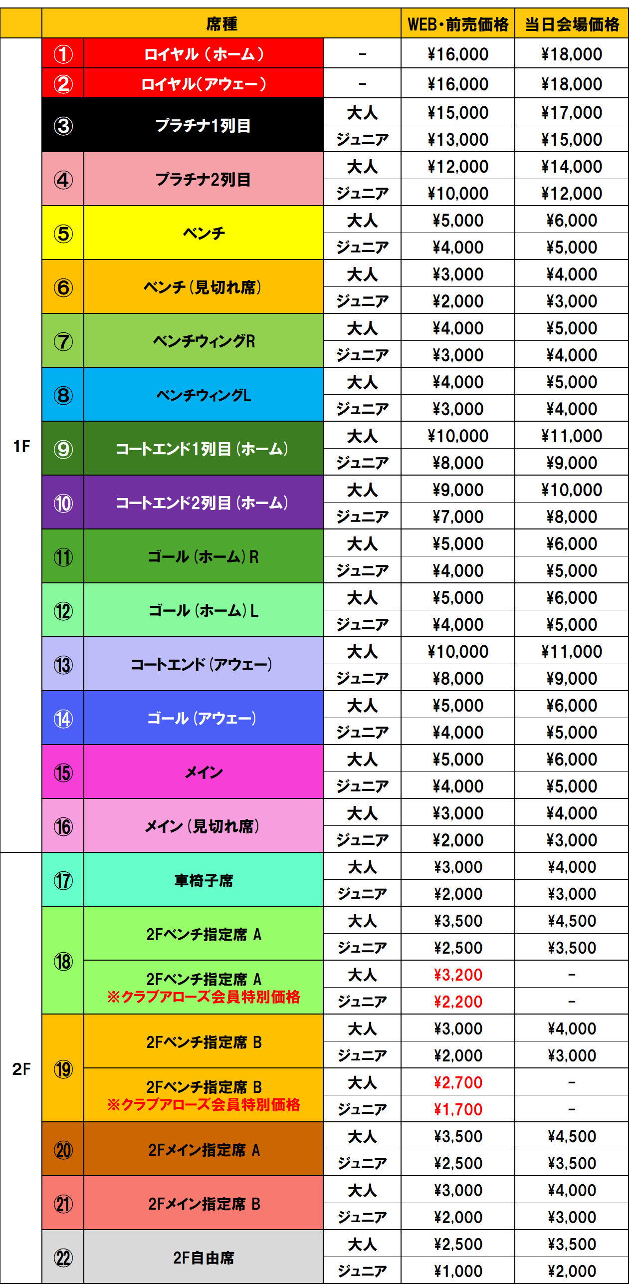 ・2F自由席が満席となった場合、立ち見のご案内やご入場いただけない可能性があります。