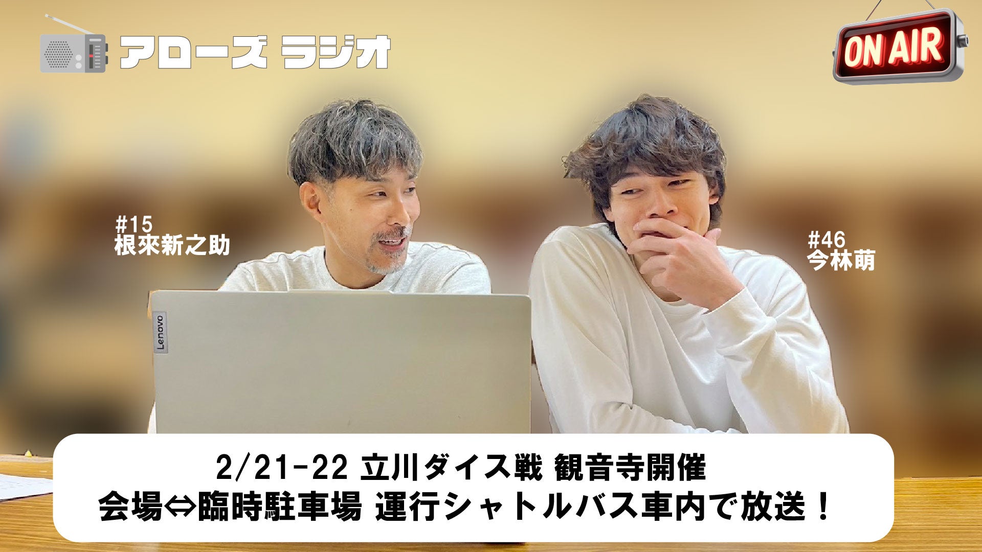 2026年2月21日(土)、22日(日)に観音寺市立総合体育館で開催される立川ダイス戦にて、会場と臨時駐車場間を運行するシャトルバスの車内でアローズラジオをお届けします。