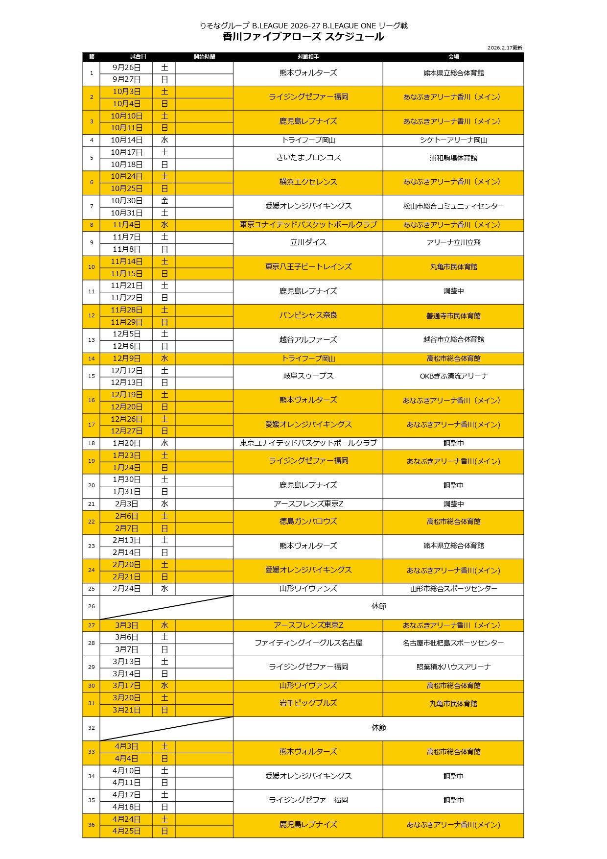 B.革新初年度となる、りそなグループ B.LEAGUE 2026-27 シーズンのスケジュールが決定しましたので、お知らせいたします。