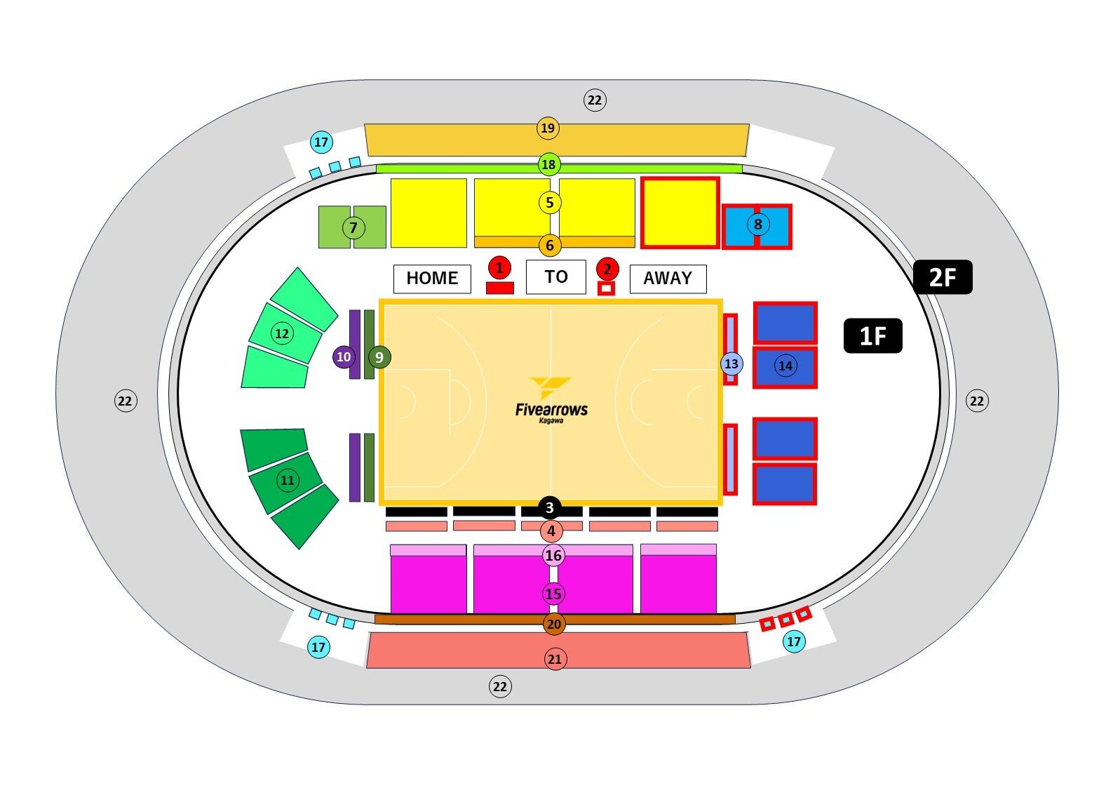 <あなぶきアリーナ香川 メインアリーナ>※あなぶきアリーナ香川メインアリーナのホームエリアとアウェーエリアは高松市総合体育館と逆になりますのでご注意ください。