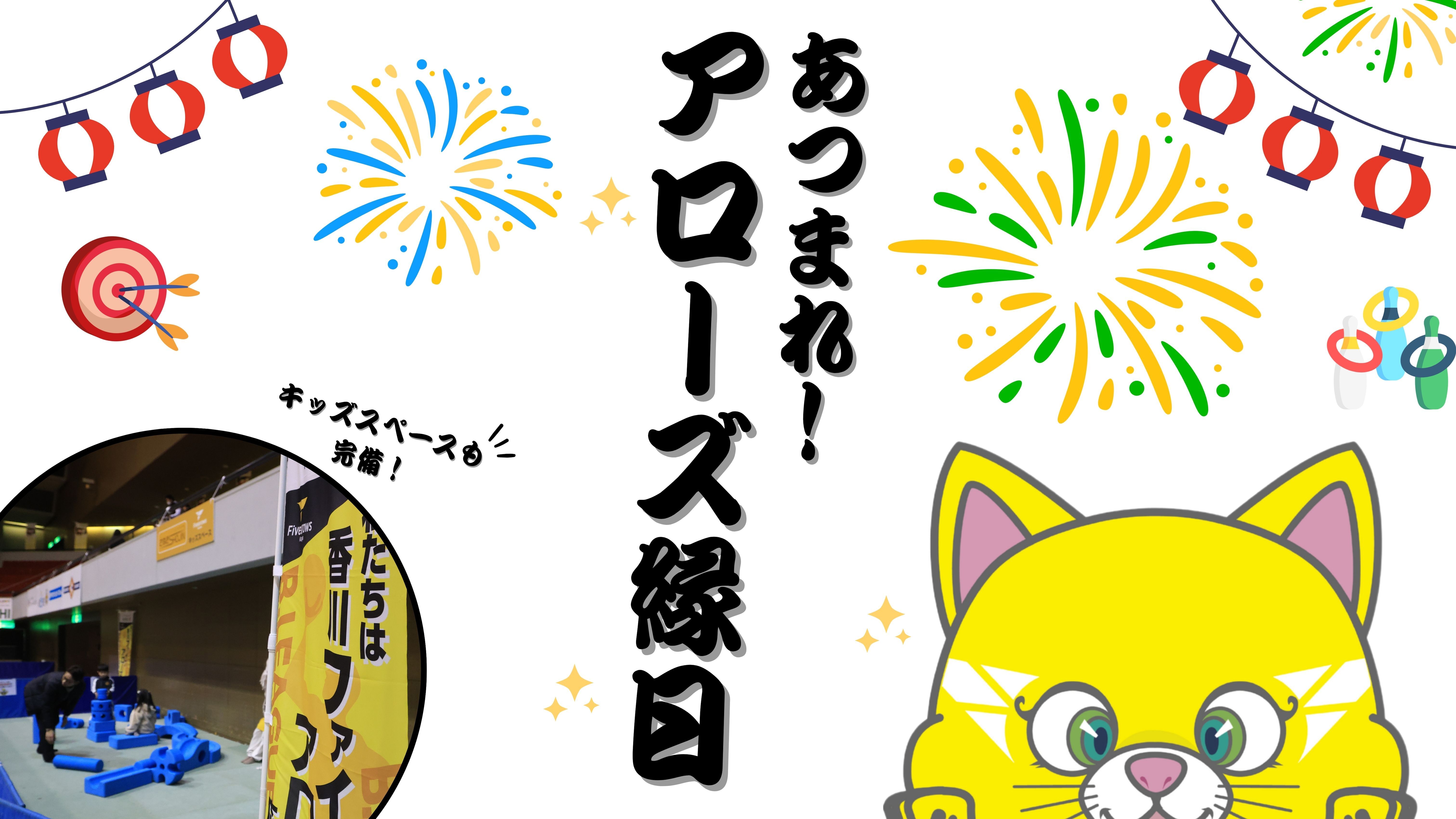 アローズ縁日、開催!試合前に、2Fロビーにアローズ縁日が登場! 大人気の「射的」「輪投げ」など、ワクワクの屋台コンテンツが勢ぞろい!