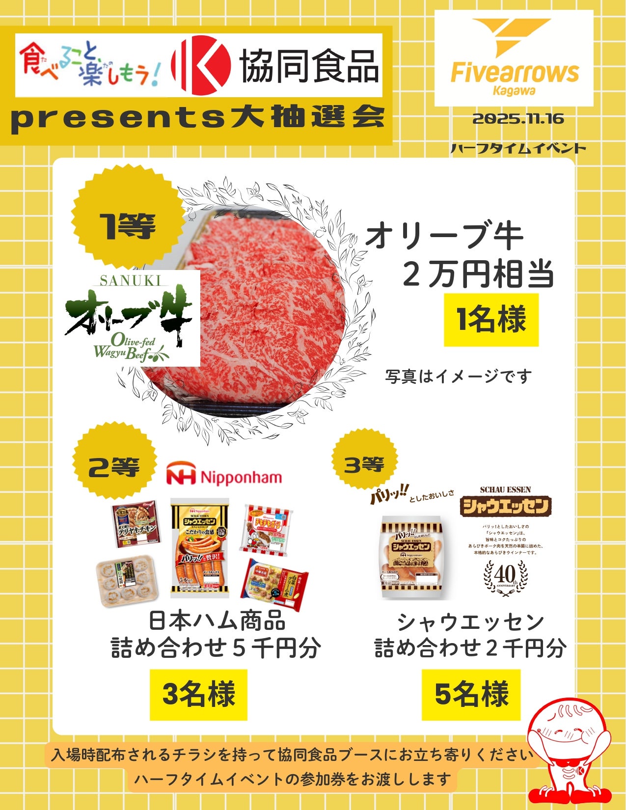 高松市総合体育館のお膝元である高松市福岡町・上福岡町・松福町・松島町・木太町、そしてあなぶきアリーナ香川のあるサンポート、浜ノ町にお住まいの方、先着50名様を1F指定席にご招待いたします。