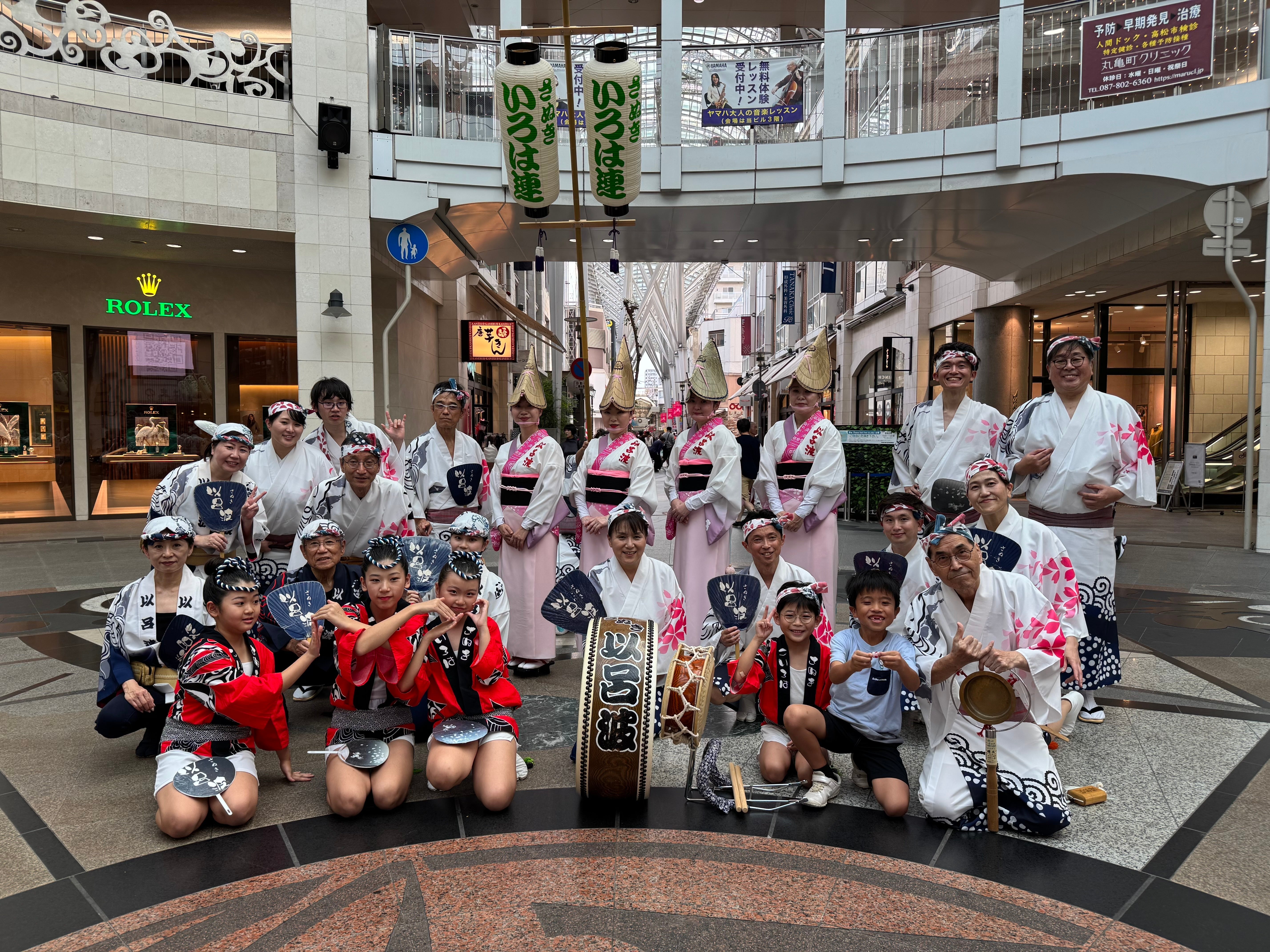 以呂波の踊りは、随所に香川らしさを取り入れ、お囃子には『こんぴらふねふね』や『一合まいた』。