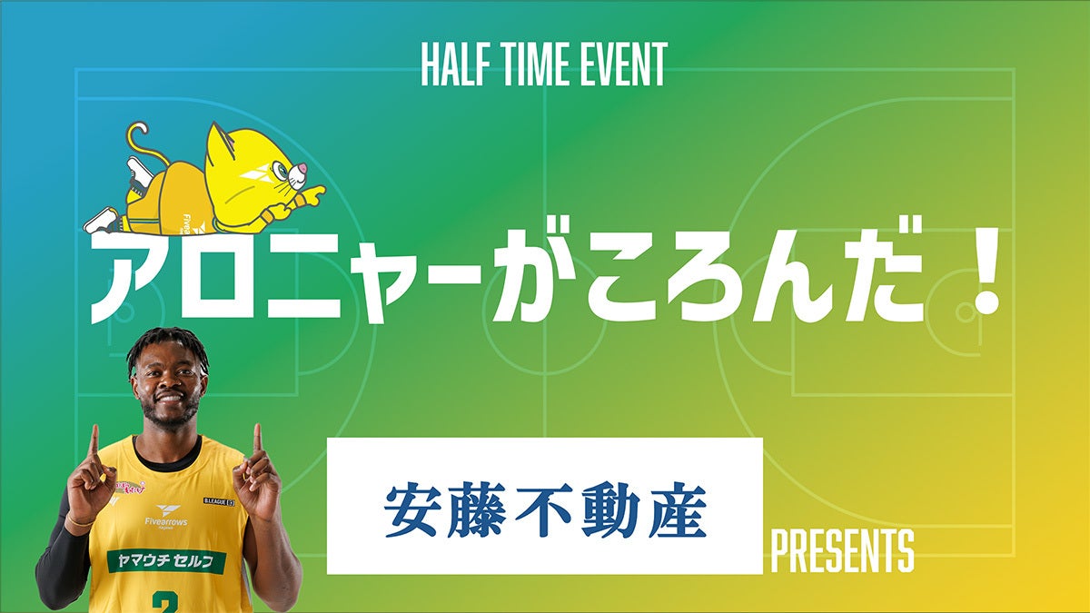 アロニャーが鬼役になって「だるまさんがころんだ!」大会を開催。1位から3位の皆さんには豪華賞品をプレゼント!